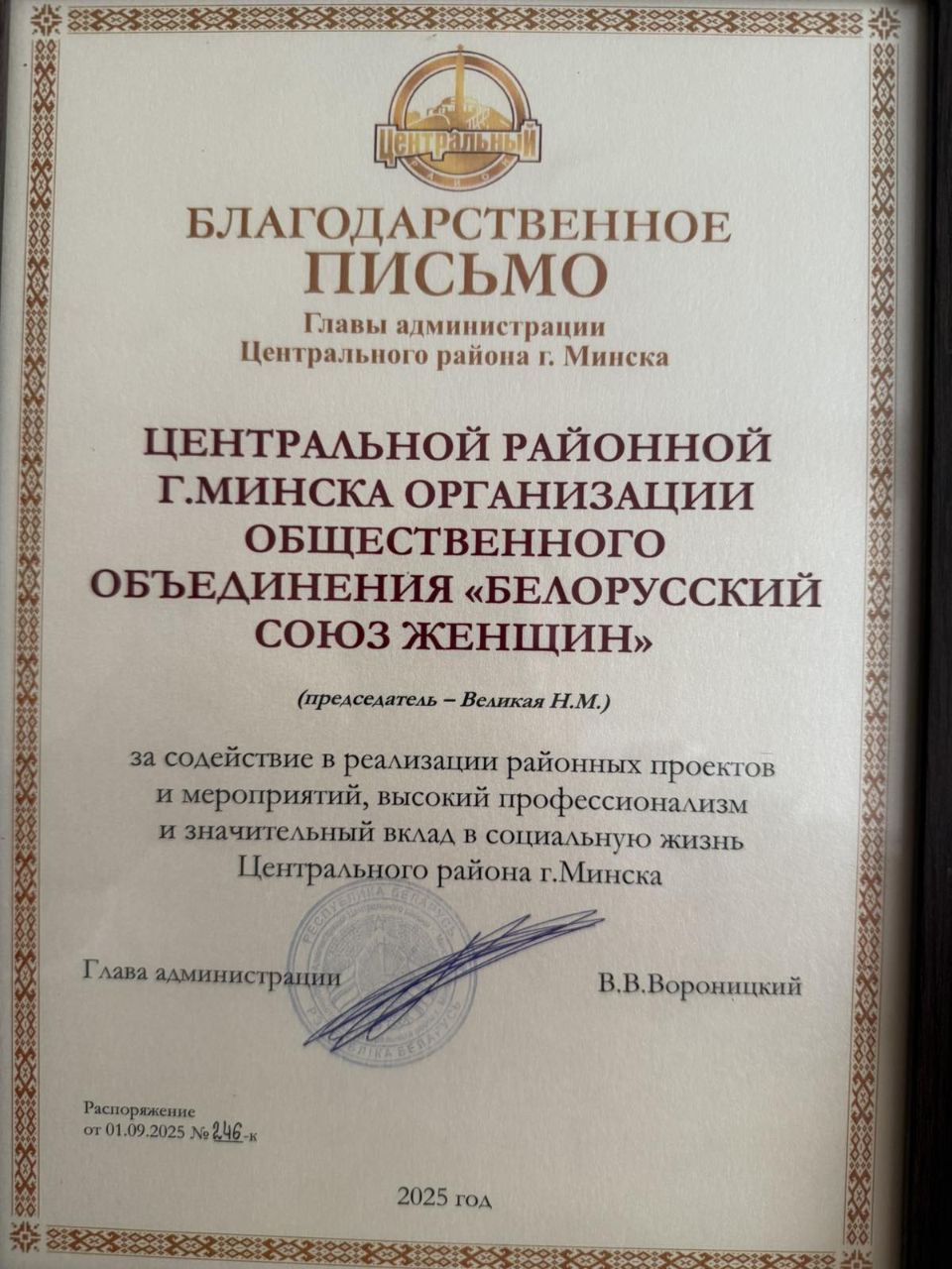 В кинотеатре «Москва» состоялась церемония награждения педагогических работников Грамотами Центральной районной организации ОО «БСЖ» за многолетний труд в системе образования и значительный вклад в развитие и реализацию социальных проектов ОО «БСЖ». Мероприятие приурочено к профессиональному празднику — Дню учителя. Поздравительные слова педагогическим работникам прозвучали от Молодежного крыла Центральной районной организации. Творческим номером присутствующих поздравил Заслуженный […]
