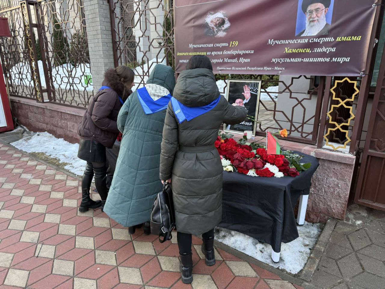 Представительницы Центральной районной организации ОО «БСЖ» Минского государственного дворца детей и молодежи присоединились к дням траура и возложили цветы к Посольству Исламской Республики Иран в Минске.